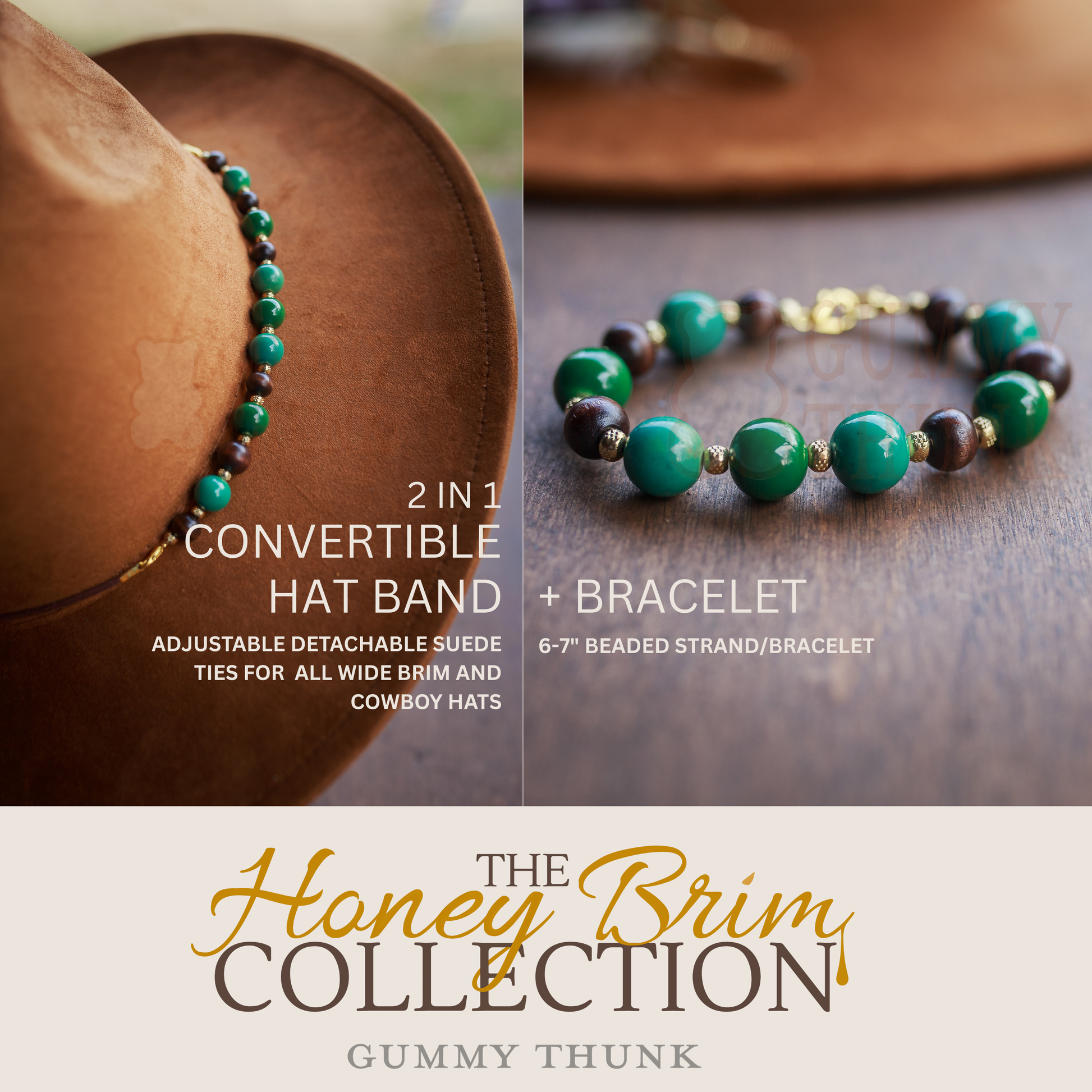 2 in 1 Beaded Hat Band + Bracelet Combo for All Wide Brim, Fedora, and Cowboy Style Hats