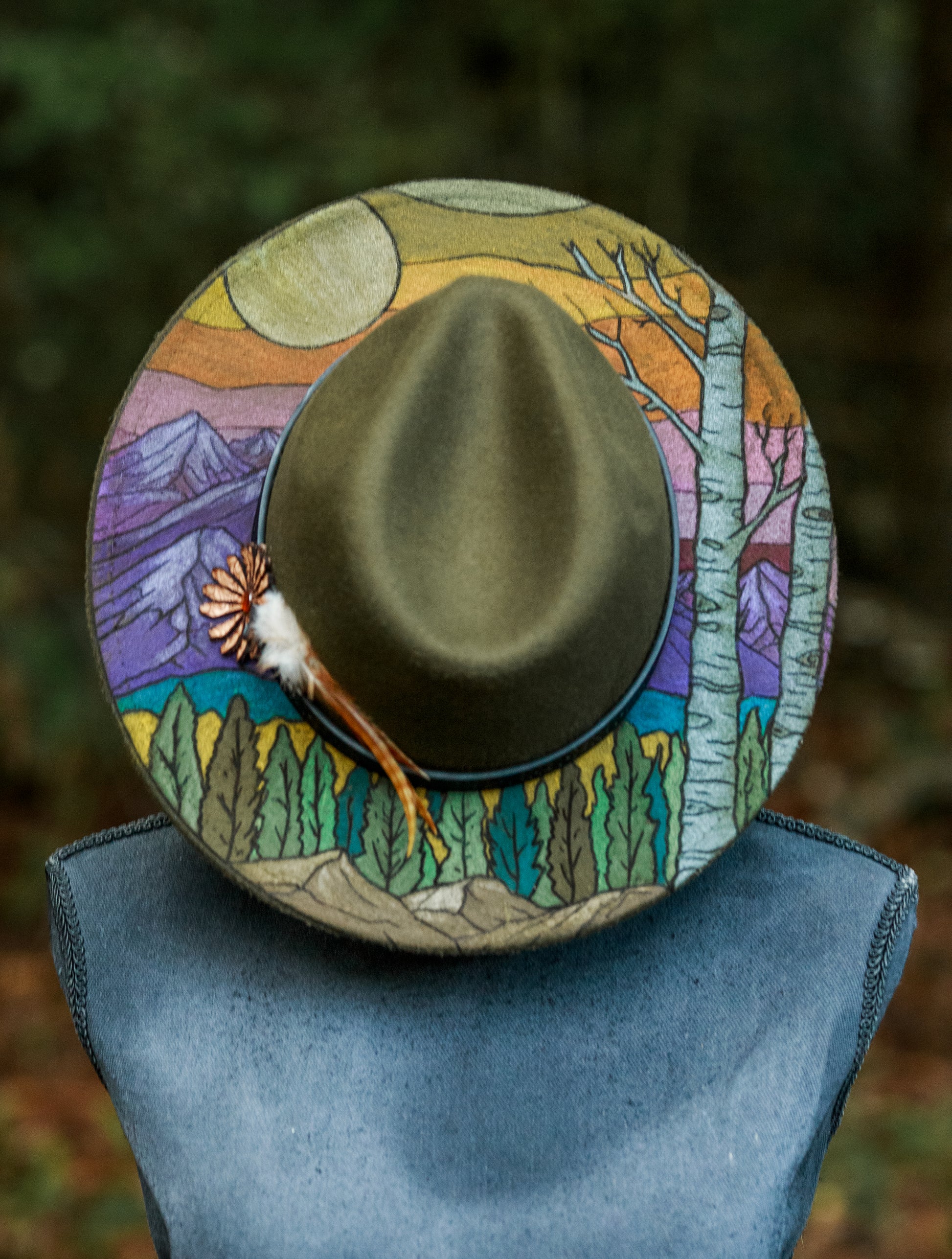 Aspen Sunset SHORT Brim Hat Template for Burning - Laser SVG and Hand Burning Files