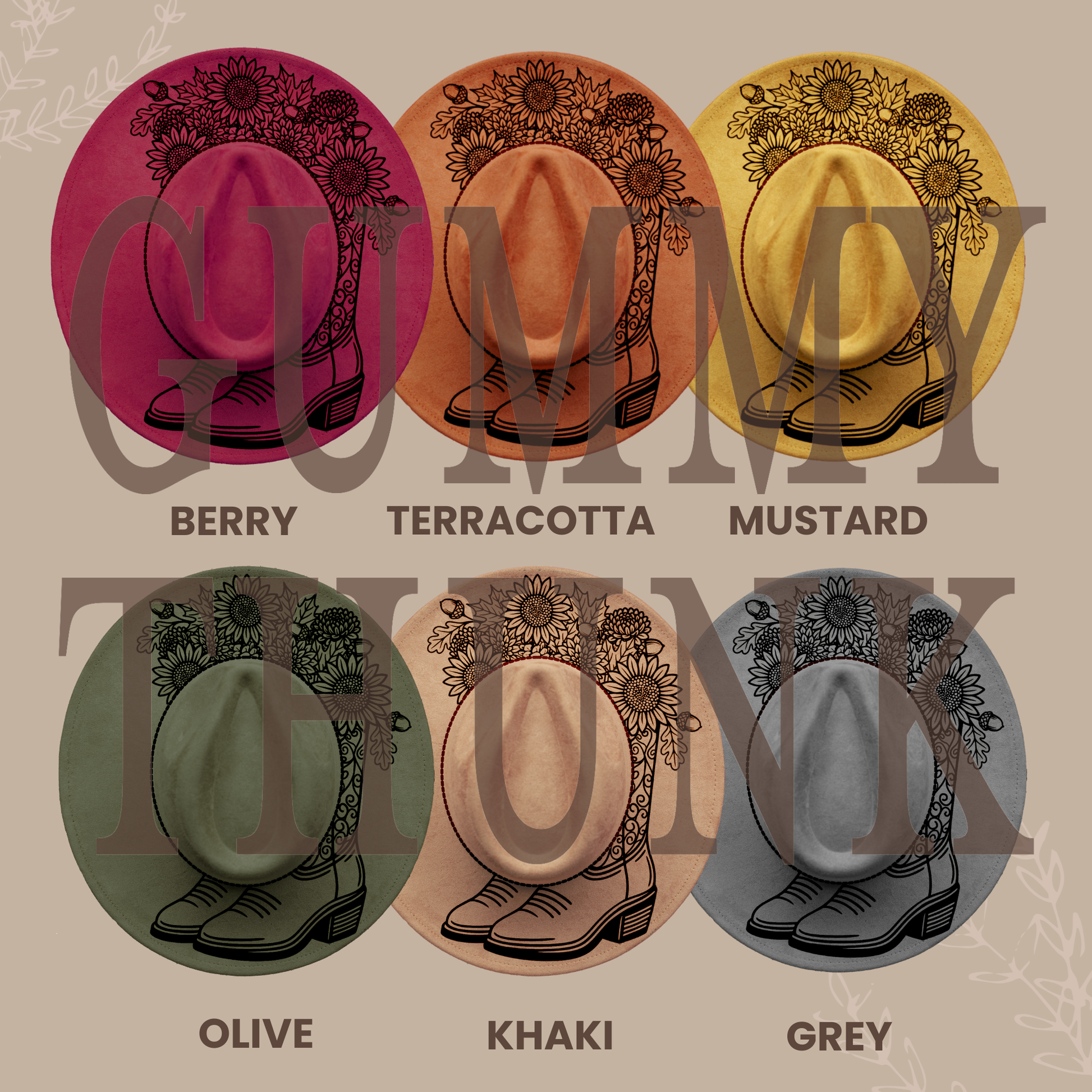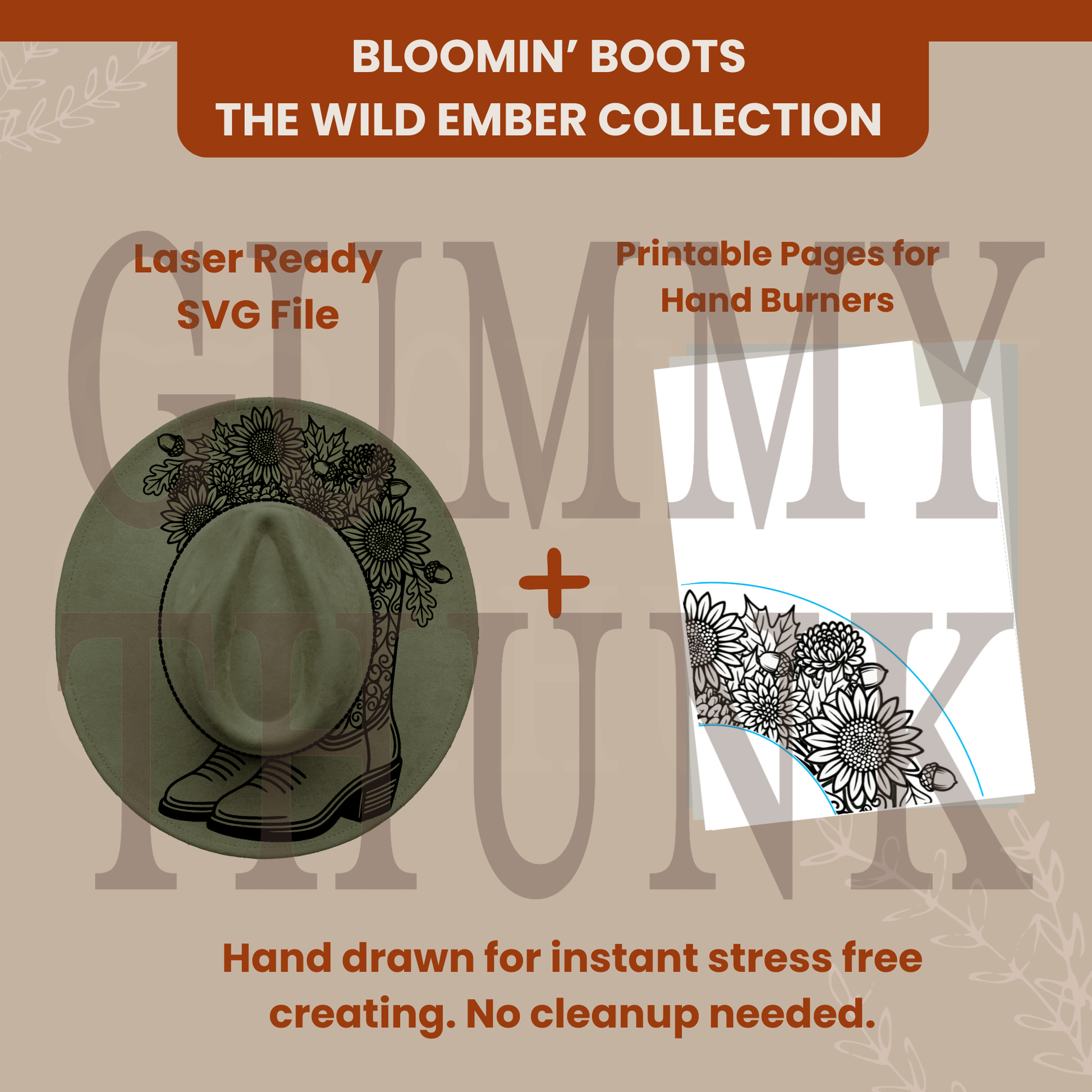 Bloomin' Boots -- Digital Design for Hat Burning -- Laser Engraving and Hand Burning Wide Brim Hat Template (Copy)