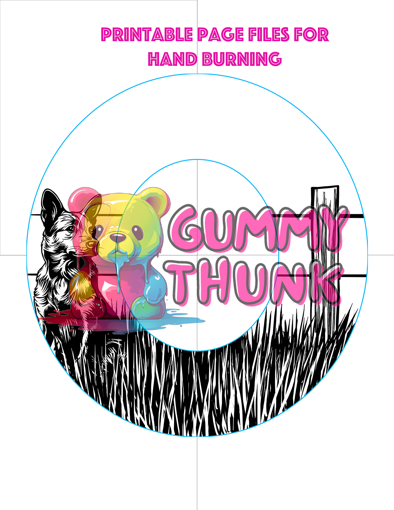 Separated printable pages are provided for printed your design on 8.5x11 pages for hand burners.
