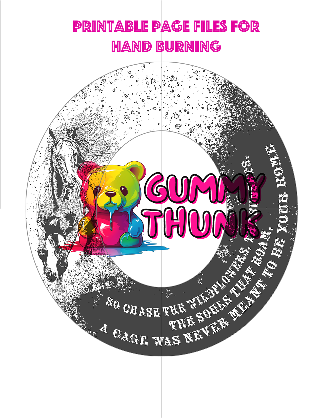 Separated printable pages are provided for printed your design on 8.5x11 pages for hand burners.