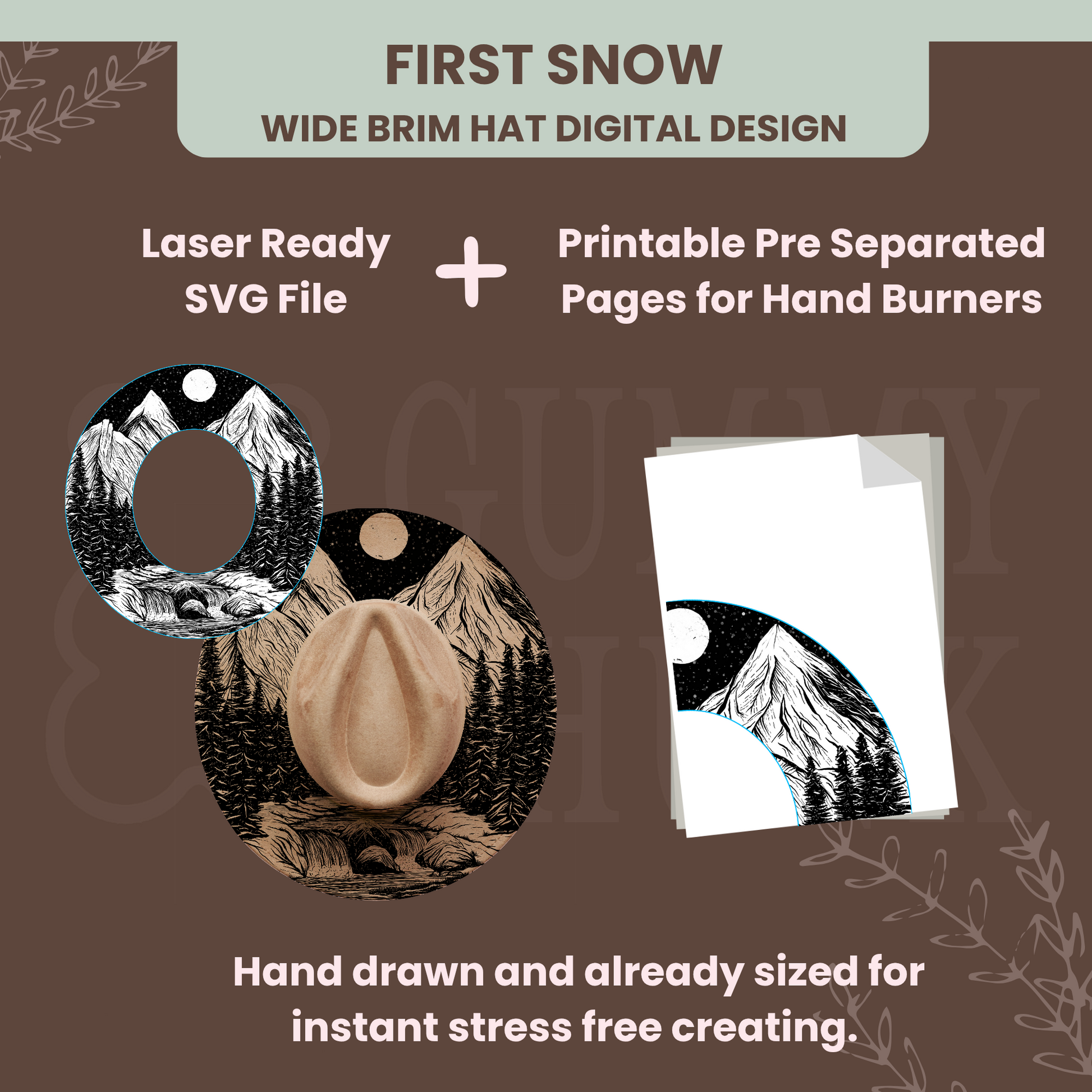 First Snow - Wide Brim Hat Template for Burning - SVG and PNG Files