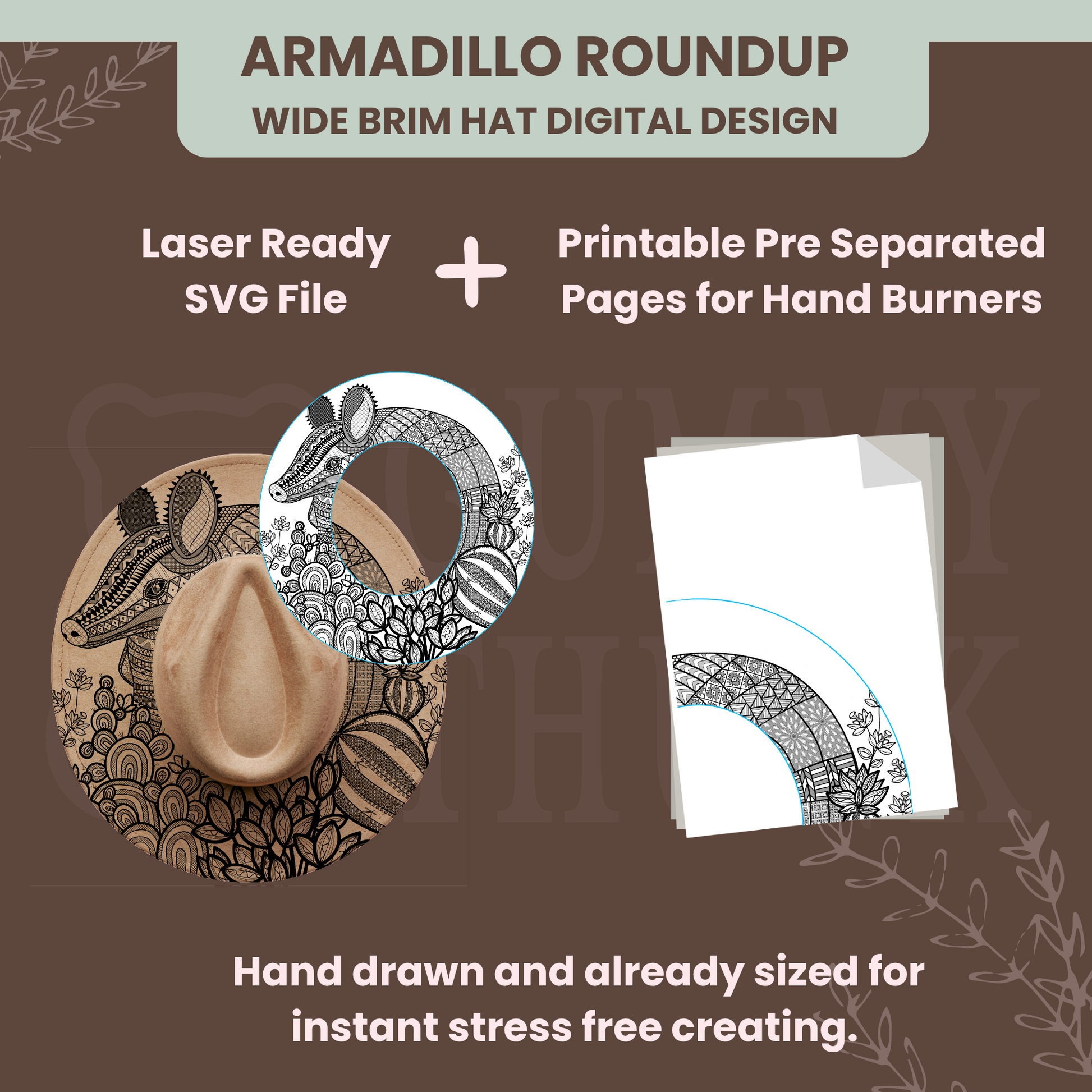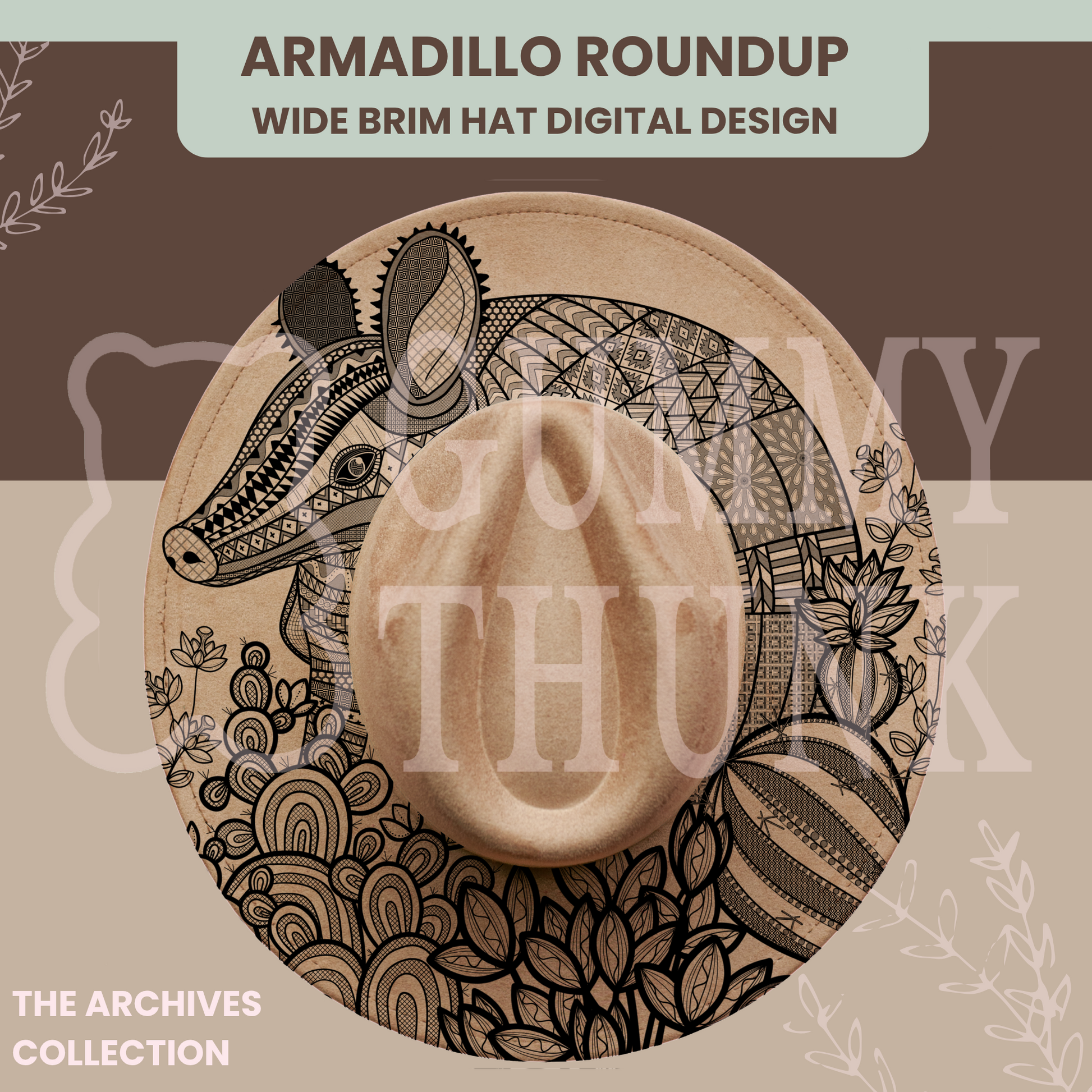 Armadillo Roundup - Wide Brim Hat Template for Burning - SVG and PNG Files