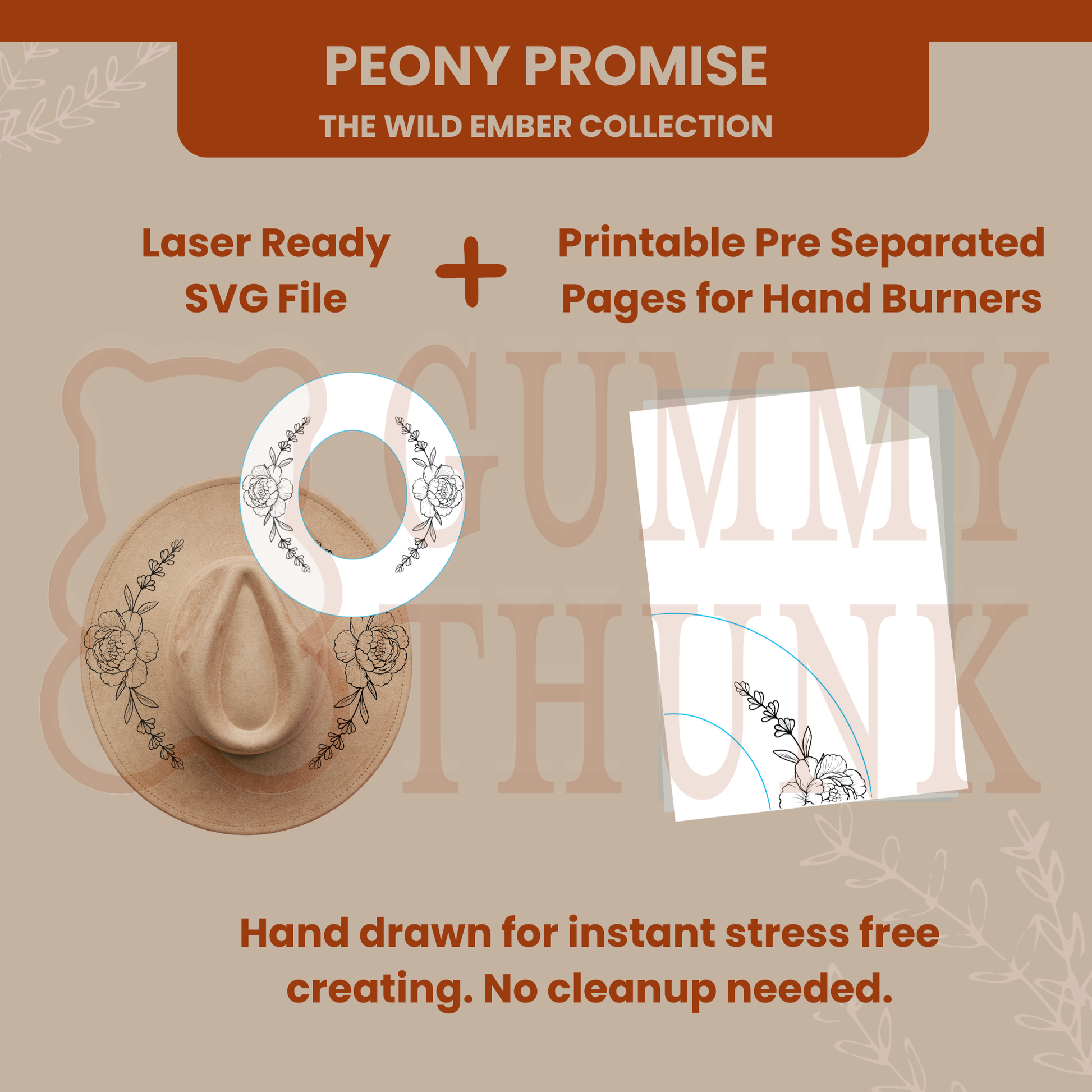 Peony Promise Wide Brim Hat Template for Burning - Laser SVG and Hand Burning Files
