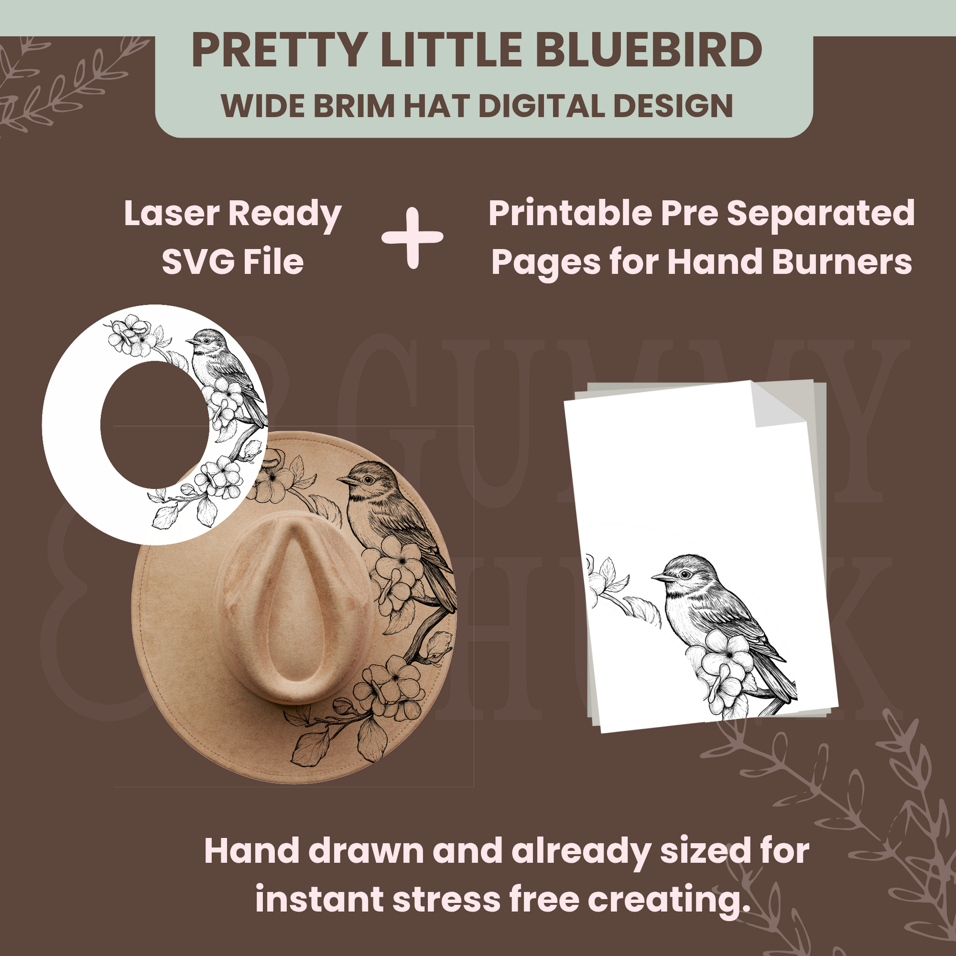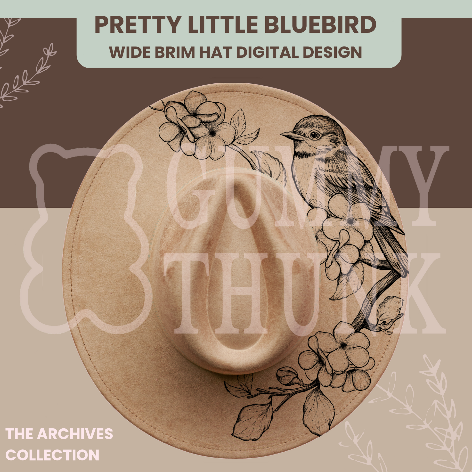 Pretty Little Bluebird Wide Brim Hat Template for Burning - Laser SVG and Hand Burning Files