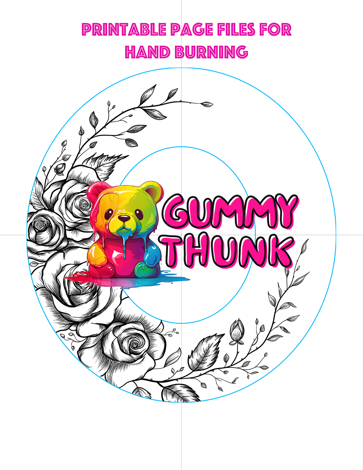 Separated printable pages are provided for printed your design on 8.5x11 pages for hand burners.