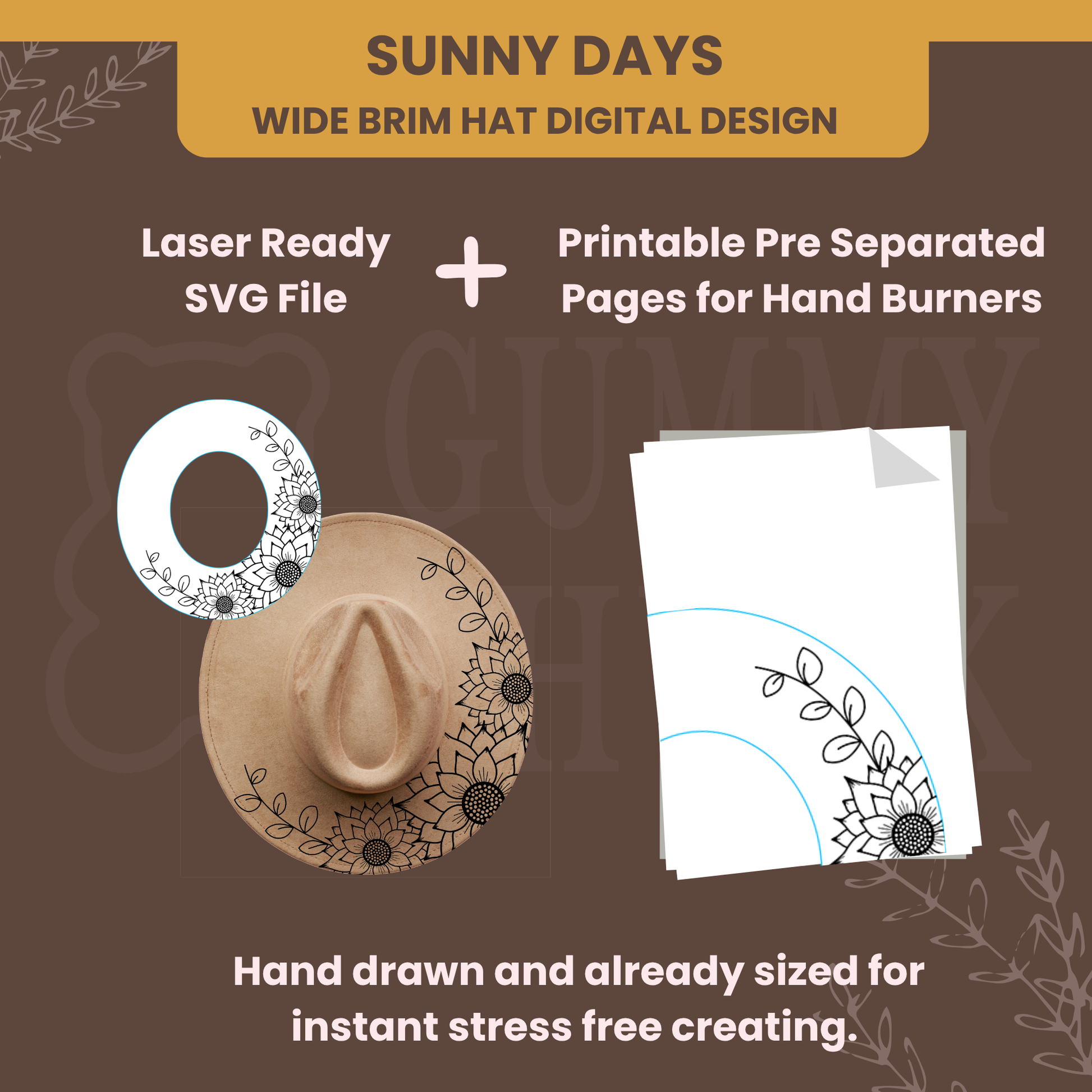Sunflower - Beginners Wide Brim Hat Template for Burning and Painting - SVG and JPEG Files
