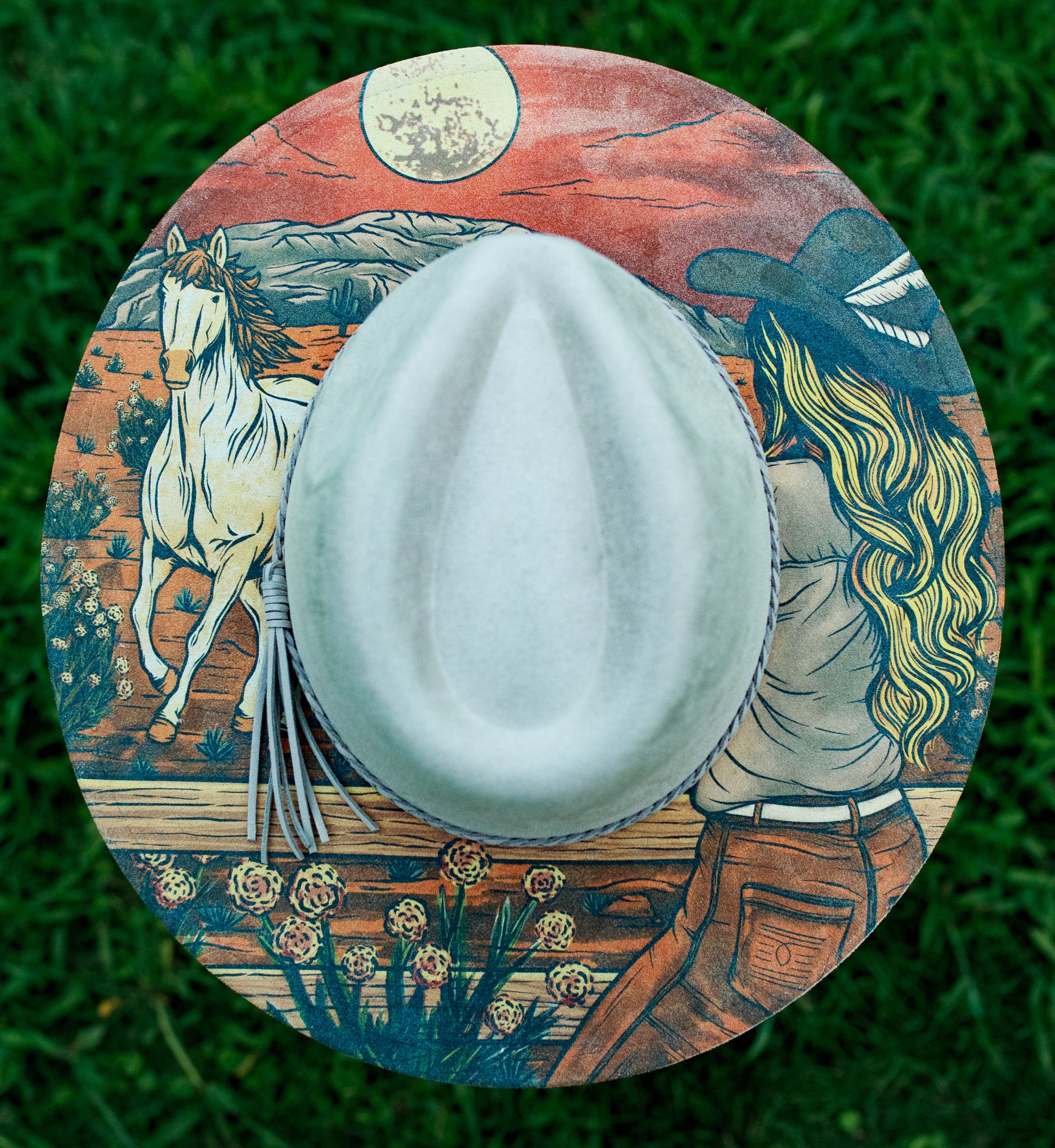 Winter Sale - Free Rein UV Printed - Vegan Suede Wide Brim
