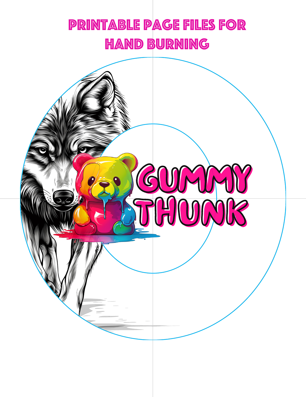 Separated printable pages are provided for printed your design on 8.5x11 pages for hand burners.